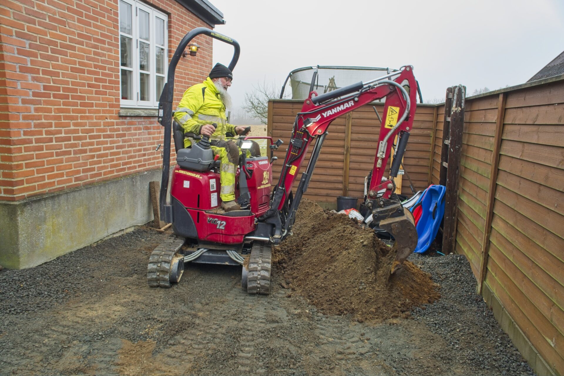 Pladsen er ofte trang. Men med den rigtige gravemaskine og en stærk motorbør er det ikke noget problem.